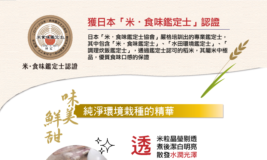 榮獲「日本米‧食味鑑定士」認證